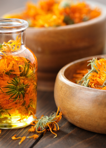 Instructions: Mix the ingredients in a glass bottle, let the mixture sit in the sun for one month or two, and voila! Apply a few drops to clean skin morning and night.